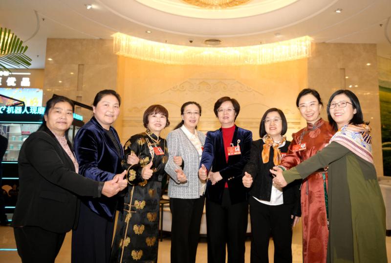3月7日,參加十四屆全國人大三次會議的內(nèi)蒙古代表團的部分女代表們在駐地合影,迎接即將到來的三八婦女節(jié),表達了對全國女性的美好祝愿。記者 馬建兵 攝