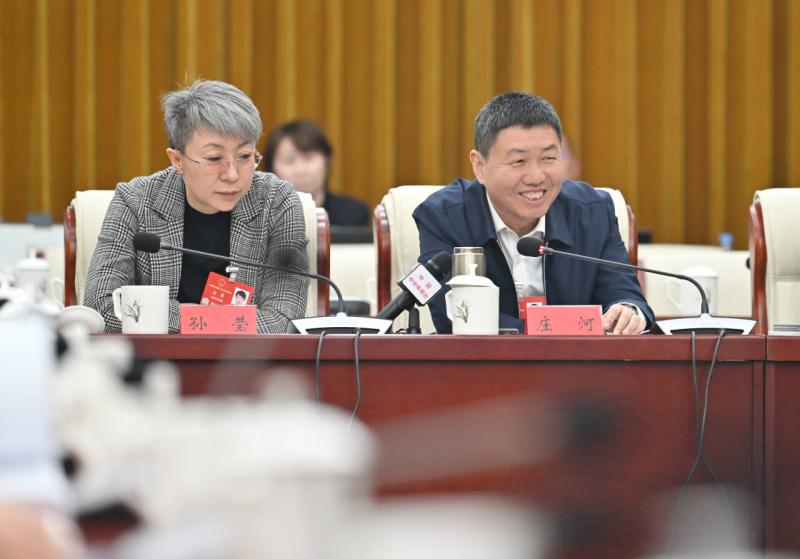 3月7日,全國人大代表莊河(右)說,中國鐵路呼和浩特局集團有限公司將積極落實政府工作報告的相關(guān)要求,加強鐵路基礎(chǔ)設施建設,優(yōu)化客運產(chǎn)品,實現(xiàn)多樣供給,大力發(fā)展鐵路現(xiàn)代物流,發(fā)揮好鐵路對推動經(jīng)濟社會高質(zhì)量發(fā)展的支撐保障作用。記者 馬建兵 攝