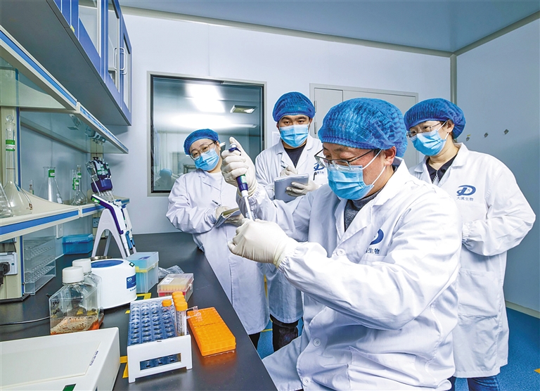 內(nèi)蒙古大溪生物科技有限公司檢驗(yàn)人員學(xué)習(xí)檢驗(yàn)技術(shù)。