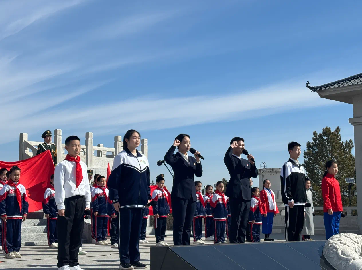 在赤峰市林西縣五十家子鎮(zhèn)烈士陵園,全縣各地黨員、志愿者以及五十家子鎮(zhèn)寄宿制小學(xué)師生代表莊嚴(yán)肅立,齊聲高唱國歌,表達(dá)對(duì)革命先烈的深切緬懷。