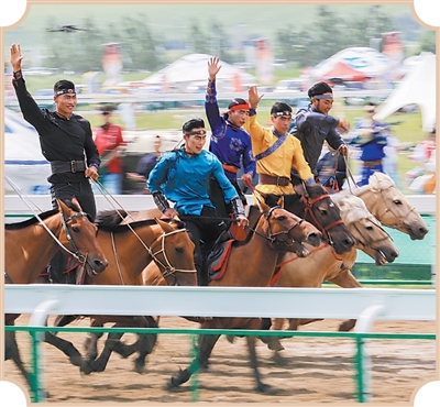 蒙古國(guó)馬術(shù)演員在2024年內(nèi)蒙古興安盟那達(dá)慕大會(huì)上表演。韓雙龍 攝