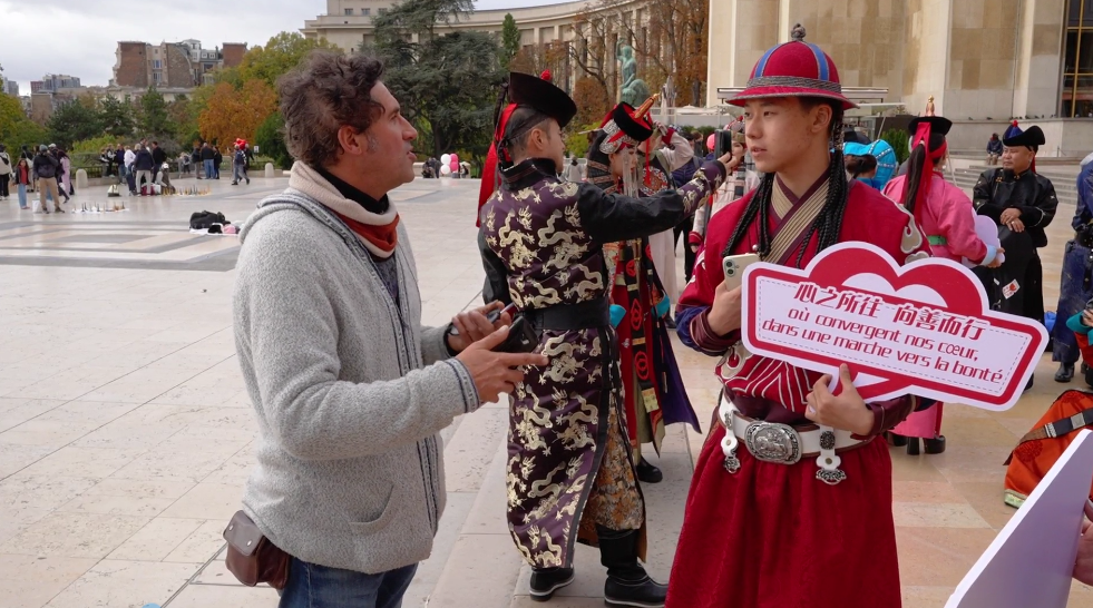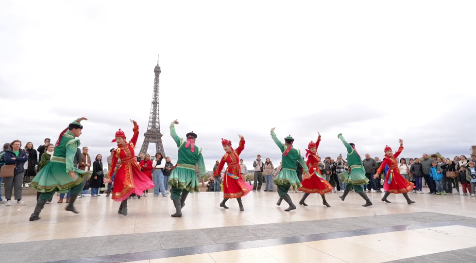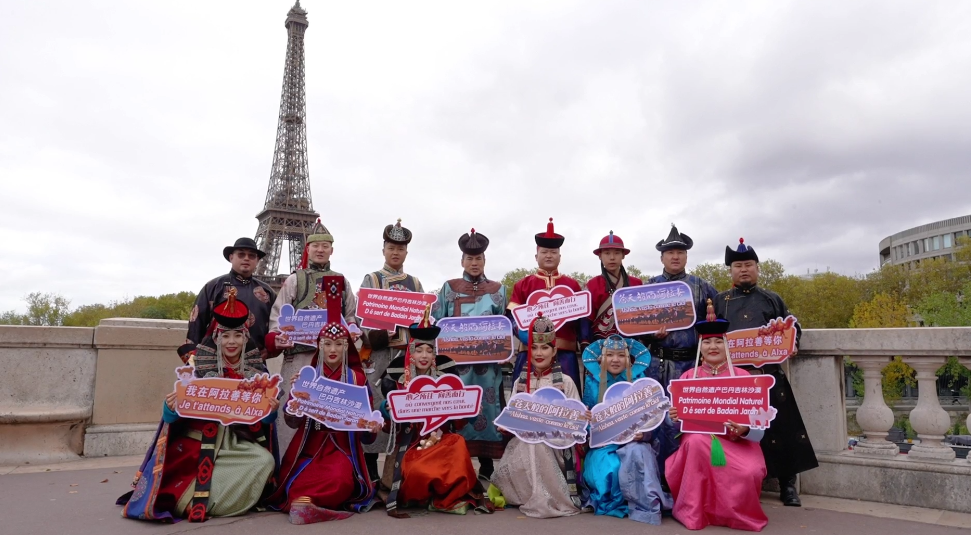 在法國巴黎市的夏約宮廣場、埃菲爾鐵塔、香榭麗舍大街、巴黎圣母院、凱旋門、國際大學城,比利時布魯塞爾市大廣場、藝術山等地,阿拉善的烏蘭牧騎演員開啟了一場場融合蒙古族華服走秀與快閃歌舞表演,“阿拉善在哪里?”“這服裝太酷了!”“怎么有萬馬奔騰的感覺!”“想去看一看!”“這沙漠也太壯觀了!”快閃路演吸引了法國、比利時以及來自世界各地的游客駐足觀看,喝彩不斷,沉醉其中。