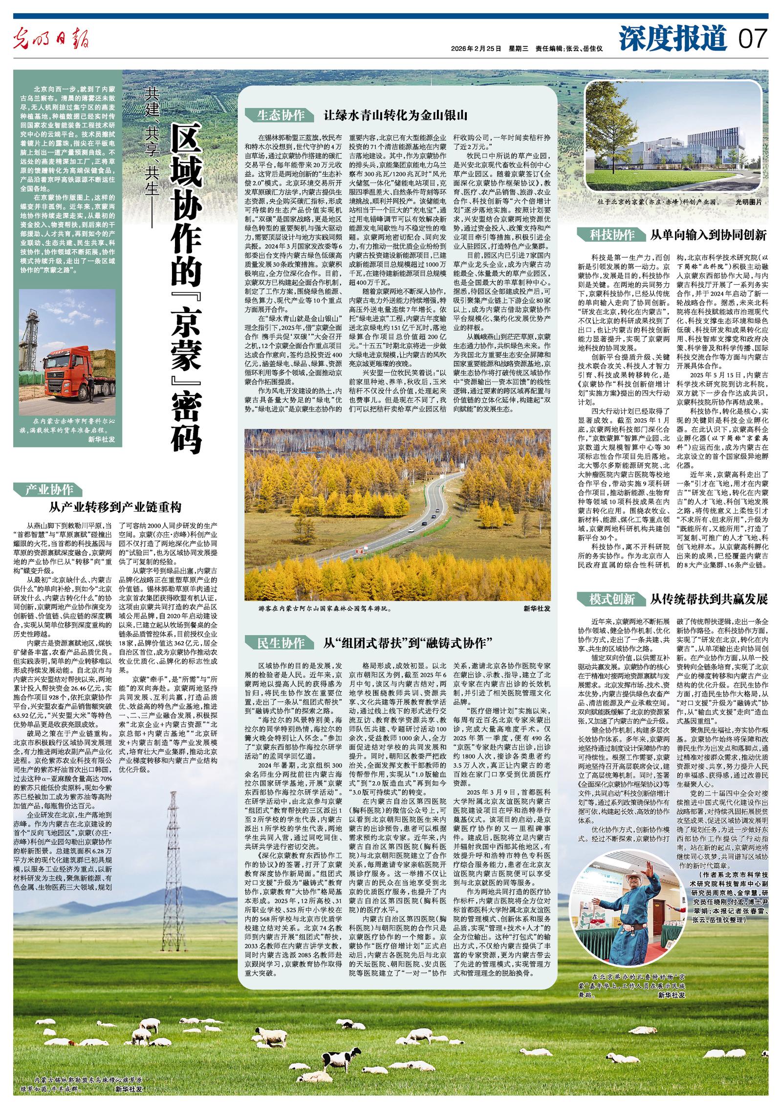 2026年2月25日《光明日報》第7版整版刊發(fā)了《共建、共享、共生——區(qū)域協(xié)作的“京蒙”密碼》的文章,報道了聚焦民生福祉,夯實協(xié)作根基。京蒙協(xié)作始終將保障和改善民生作為出發(fā)點和落腳點,通過精準(zhǔn)對接群眾需求,推動優(yōu)質(zhì)資源對接、共享,努力提升人民的幸福感、獲得感,通過改善民生凝聚人心。
