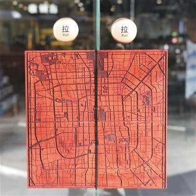 北京地圖主題書(shū)店的門(mén)把手上雕刻著北京城區(qū)地圖。地圖主題書(shū)店供圖