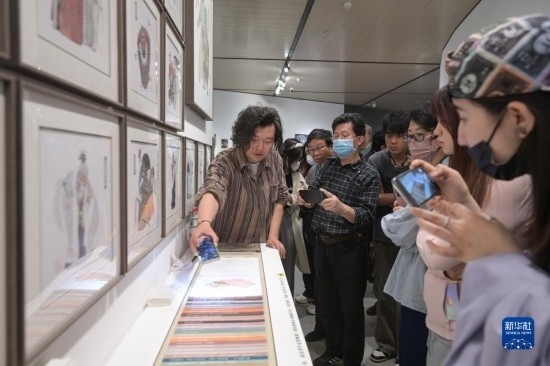 5月9日,作者申杰在展覽現(xiàn)場(chǎng)向觀眾介紹自己的作品。