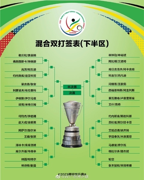 混合雙打簽表(下半?yún)^(qū))圖片來(lái)源:WTT世界乒聯(lián)官微