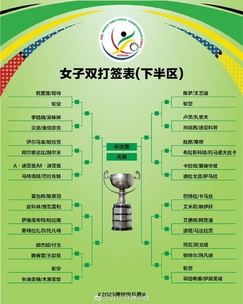 2023德班世乒賽女單具體抽簽結(jié)果: