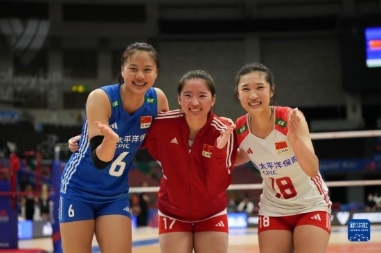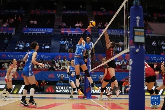 當日,在日本名古屋舉行的2023世界女排聯(lián)賽分站賽中,中國隊以3比0戰(zhàn)勝德國隊。