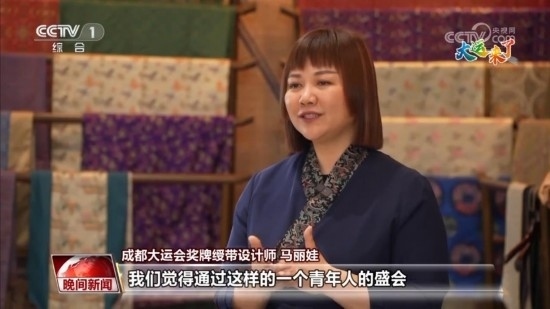 成都大運會獎牌綬帶設(shè)計師 馬麗娃:這個體育賽事其實是一個橋梁,通過這樣一個青年人的盛會,把我們的優(yōu)秀傳統(tǒng)文化用肉眼可見的形式傳遞出去,我覺得這是非常棒的一種形式。