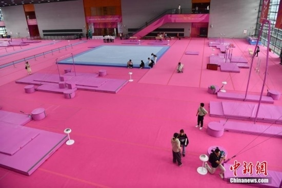 打卡成都大運(yùn)會(huì)里的“粉色系”體操比賽訓(xùn)練場(chǎng)