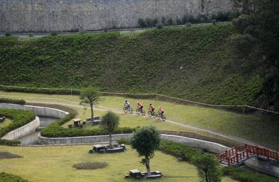 10月28日,參賽選手在比賽中。當(dāng)日,第一屆全國學(xué)生(青年)運(yùn)動(dòng)會(huì)男子山地自行車越野賽在廣西南丹縣舉行,貴陽市代表隊(duì)選手王勝以1小時(shí)4分36秒奪得冠軍,遵義市代表隊(duì)選手文靈浩以1小時(shí)4分38秒獲得亞軍,成都市代表隊(duì)選手解道超以1小時(shí)5分12秒獲得季軍。新華社記者 陸波岸 攝