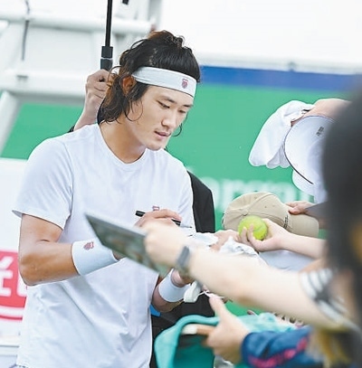 張之臻是上海網(wǎng)球大師賽舉辦以來(lái)首位憑借排名進(jìn)入正賽的本土球員。當(dāng)現(xiàn)場(chǎng)主持人介紹他是來(lái)自上海的選手時(shí),觀眾的歡呼加油聲格外熱烈。