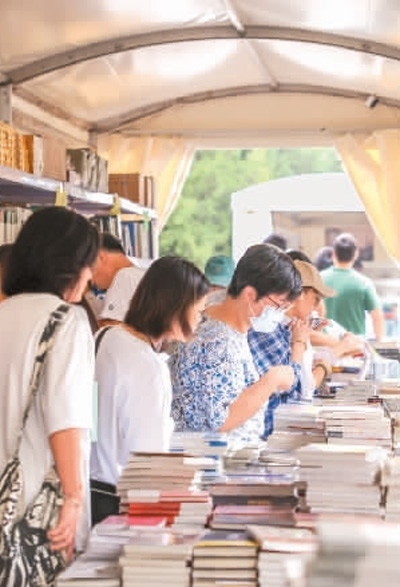 游客在2023“我與地壇”北京書市現(xiàn)場選購書籍。本報(bào)記者 蔣雨師攝