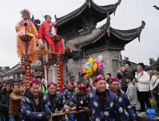 當(dāng)日,有500多年歷史的前童元宵行會在浙江省寧??h前童古鎮(zhèn)舉行。每年正月十四、十五舉行的前童元宵行會始于明中葉,群眾以鳴群鑼、抬鼓亭、放銃花等方式紀(jì)念祖先開渠鑿砩、灌溉農(nóng)田的功德,祈愿年景豐收。2014年,前童元宵行會入選第四批國家級非物質(zhì)文化遺產(chǎn)名錄。近年來前童古鎮(zhèn)發(fā)展旅游經(jīng)濟,元宵行會成為展示鄉(xiāng)村振興的重要窗口。