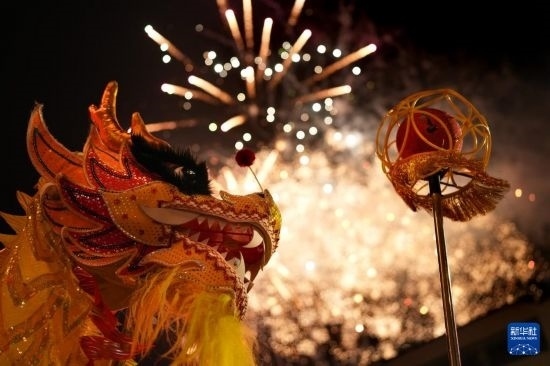 2月23日,舞龍隊在古鎮(zhèn)表演。