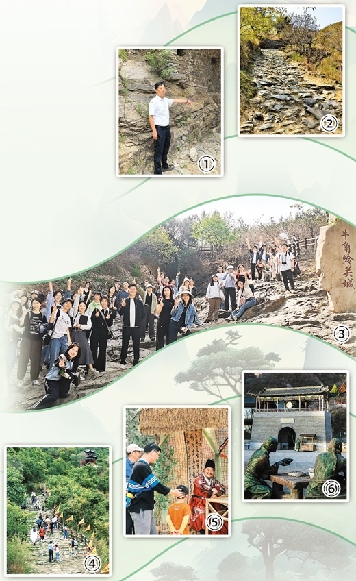圖①:王春和介紹古道上的蹄窩。本報(bào)記者 嚴(yán) 冰攝圖②:京西古道蹄窩。陳 闖攝圖③:高校學(xué)生走進(jìn)京西古道。艾 寧攝圖④:游客游覽京西古道。資料圖片圖⑤:游客在京西古道茶棚體驗(yàn)沉浸式互動(dòng)。資料圖片圖⑥:京西古道景區(qū)城門樓。任梅桂攝