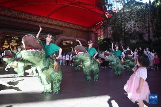 7月5日,游客在杭州宋城景區(qū)觀看巡回表演。