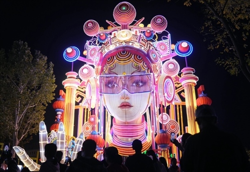 10月4日晚,北京園博園內(nèi)“京彩燈會”現(xiàn)場。新華社記者 張晨霖 攝