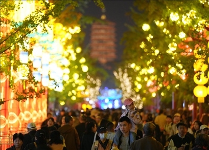 今年中秋假期,“京彩燈會”吸引了超過12萬名游客。國慶假期前4天,游客量達(dá)7萬余人。除了大飽眼福,燈會還設(shè)立150余家特色商鋪,覆蓋老字號、非遺、文創(chuàng)、餐飲美食等,豐富游客體驗。多家知名餐飲企業(yè)在燈會擺攤設(shè)點為游客服務(wù),賞燈之余還能享受大廚現(xiàn)做的星級美食。