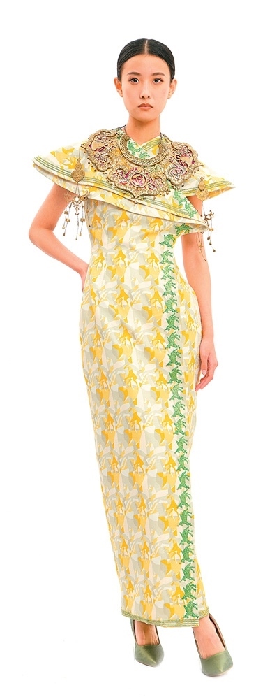 崔榮榮團(tuán)隊(duì)為“中法時(shí)尚之約:絲路遺產(chǎn)創(chuàng)新設(shè)計(jì)時(shí)裝發(fā)布會(huì)”設(shè)計(jì)的“絲綢之路”禮服。