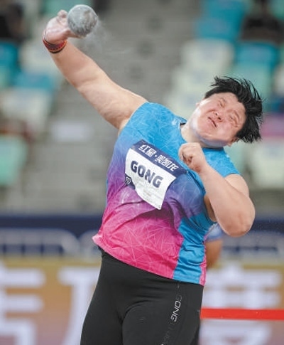 2024年世界田聯(lián)鉆石聯(lián)賽廈門(mén)站女子鉛球比賽,中國(guó)選手鞏立姣投擲鉛球。新華社記者 江 漢攝