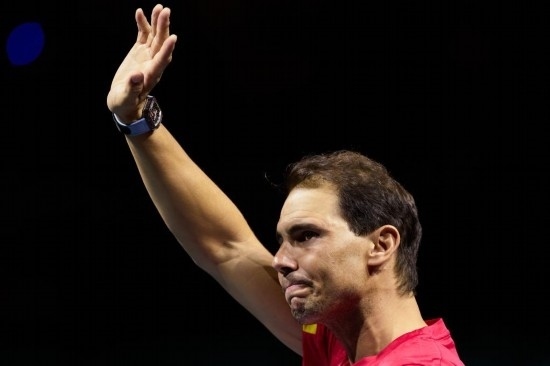 看著年輕時(shí)的自己帶著一臉青澀捧起一座座冠軍獎(jiǎng)杯的影像出現(xiàn)在球場(chǎng)大屏幕上,站在馬拉加體育宮球場(chǎng)中心的納達(dá)爾眼里泛起了淚光——這一刻,他即將與自己輝煌的職業(yè)生涯告別。