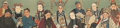工筆寫生戲畫像《同光十三絕》,清末畫師沈蓉圃所繪,展現(xiàn)了徽班進京后由演唱徽調和昆腔衍變?yōu)榫﹦〉?3位著名演員、京劇奠基人,對了解當時演員的扮相、服飾及前輩藝術家的風采,是極為珍貴的文獻資料。