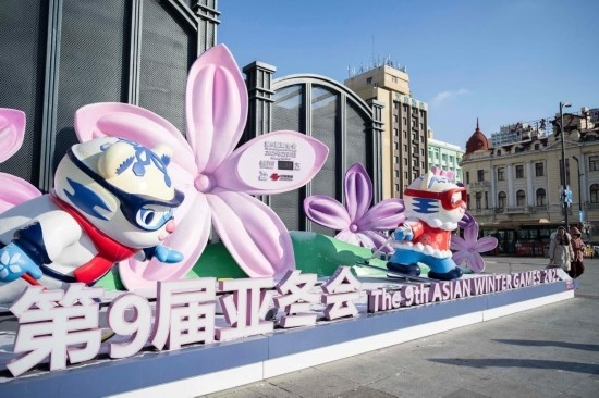 哈爾濱街頭的亞冬會(huì)吉祥物造型可愛。新華社記者 謝劍飛 攝