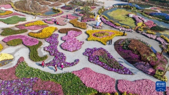 2月21日,游客在昆明市海洪莫奈花園參觀、游覽(無人機(jī)照片)。