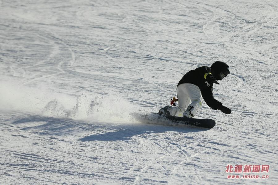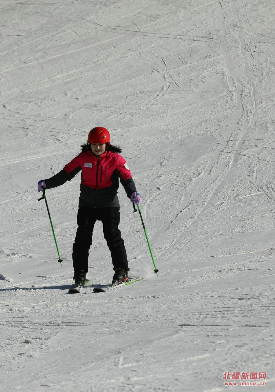 滑雪愛好者在馬鬃山滑雪場(chǎng)滑雪