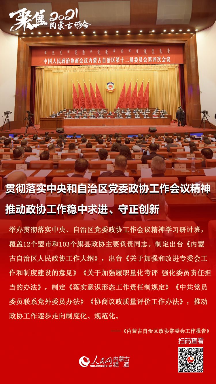 1月25日上午,自治區(qū)政協(xié)十二屆四次會(huì)議在內(nèi)蒙古人民會(huì)堂隆重開(kāi)幕。自治區(qū)政協(xié)主席李秀領(lǐng)作政協(xié)內(nèi)蒙古自治區(qū)第十二屆委員會(huì)常務(wù)委員會(huì)工作報(bào)告。今年的政協(xié)常委會(huì)工作報(bào)告都有哪些亮點(diǎn),2021年主要工作安排有哪些,七張圖帶您梳理!