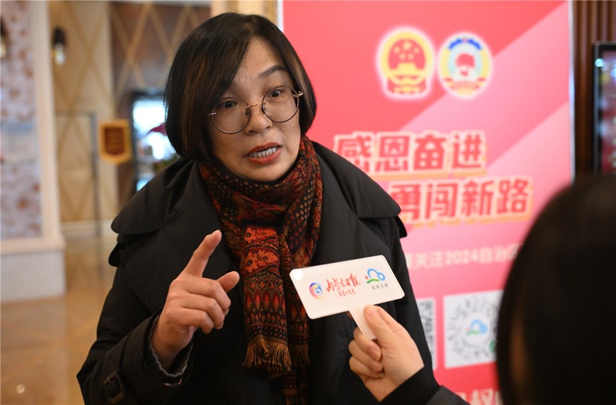 出席自治區(qū)十四屆人大二次會議的人大代表常曉萍接受內(nèi)蒙古日報·草原全媒記者采訪。