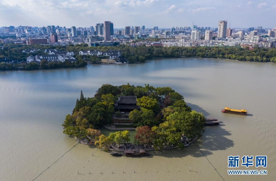 嘉興南湖湖心島(2020年10月27日攝,無人機照片)。新華社記者 徐昱 攝