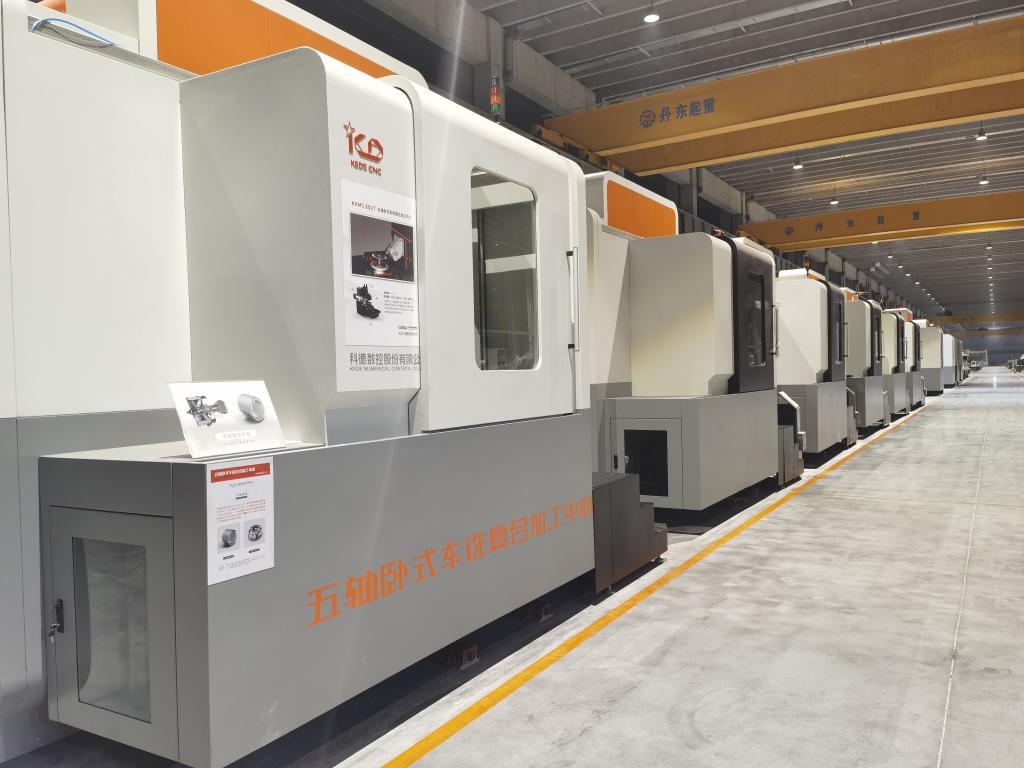 在大連光洋科技集團(tuán)25萬平方米恒溫恒濕地藏式生產(chǎn)車間,一臺臺“大塊頭”高端機(jī)床整齊排列,其中,一臺5米多高的高端五軸臥式車銑復(fù)合加工中心,十分引人注目。