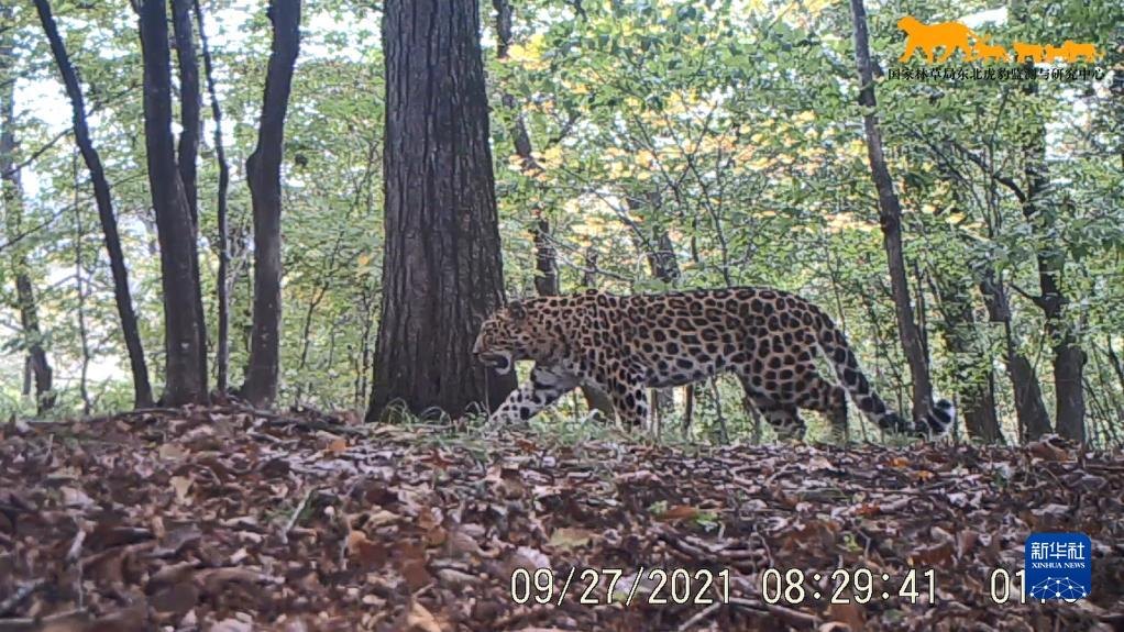 這是2021年9月27日利用“天地空一體化監(jiān)測(cè)系統(tǒng)”在東北虎豹國(guó)家公園內(nèi)監(jiān)測(cè)到的野生東北豹影像(視頻截圖)。新華社發(fā)