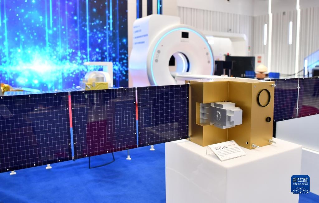 在安徽創(chuàng)新館拍攝的“墨子號”量子衛(wèi)星模型(2020年8月25日攝)。新華社記者 劉軍喜 攝