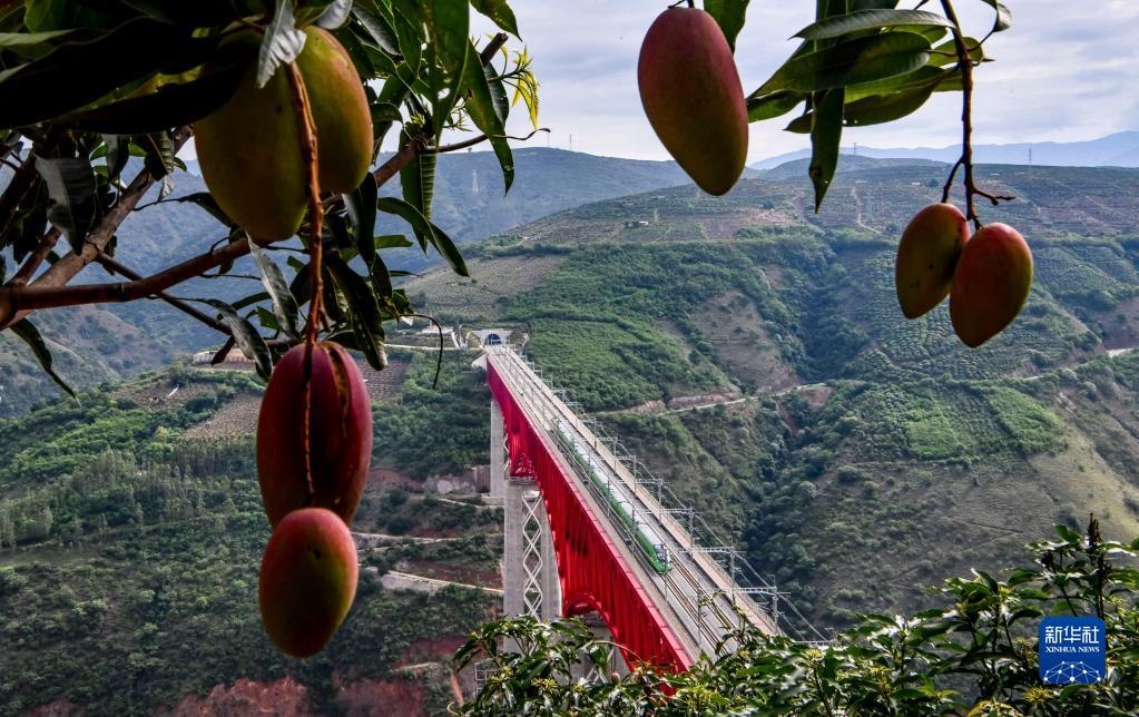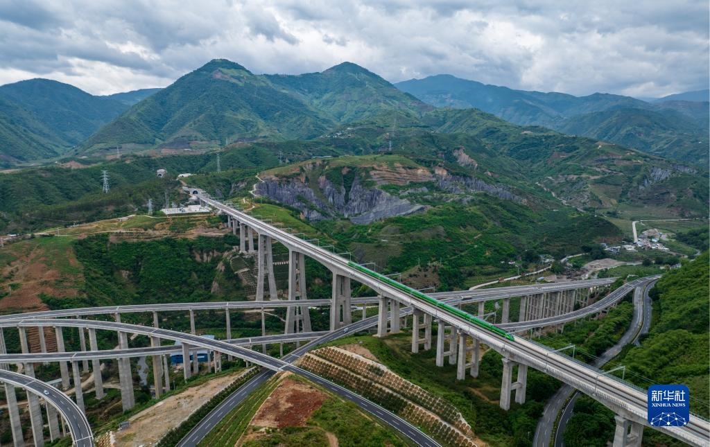 復(fù)興號(hào)列車通過中老鐵路元江特大橋(6月1日攝)。新華社記者 江文耀 攝