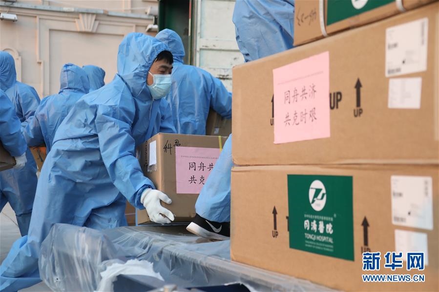 當日,國家衛(wèi)生健康委從華中科技大學同濟醫(yī)學院附屬協(xié)和醫(yī)院、附屬同濟醫(yī)院調(diào)撥的醫(yī)療物資運抵滿洲里市。 新華社記者 鄒儉樸 攝
