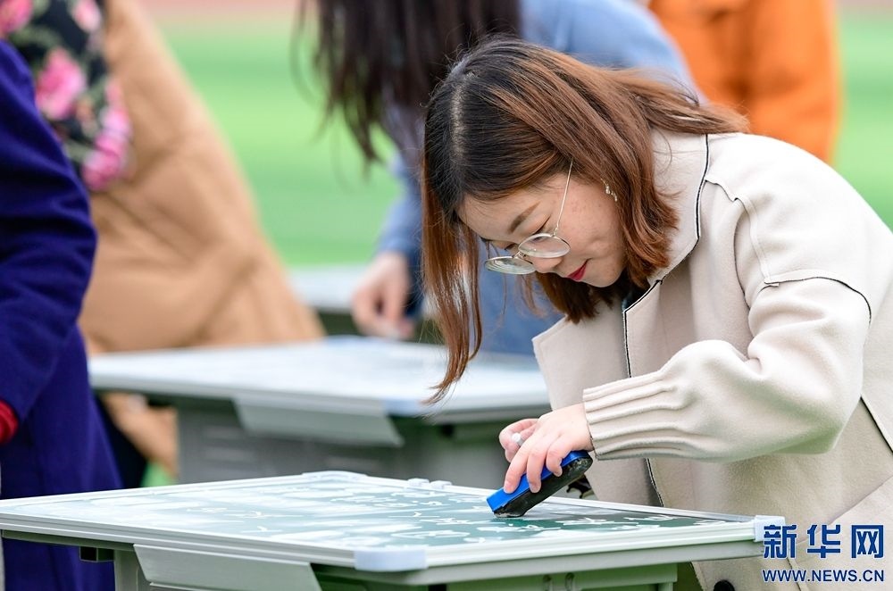3月8日,呼和浩特市第三十八中學教師在板書比賽中。新華網(wǎng)發(fā)(王正 攝)