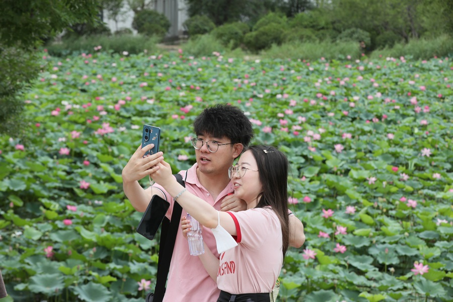 7月30日,呼和浩特青城公園的荷花進(jìn)入最佳觀賞期,吸引眾多游人前來(lái)打卡。